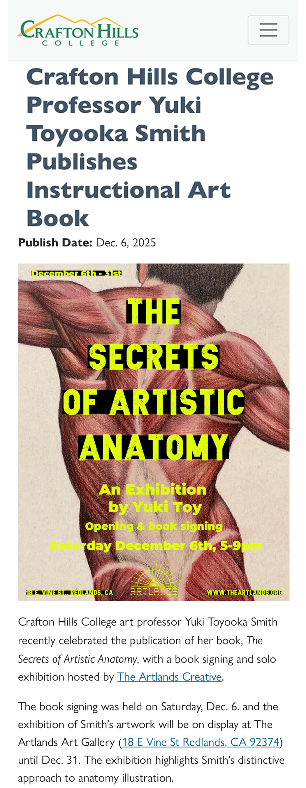 Crafton Hills College Professor Yuki Toyooka Smith Publishes Instructional Art Book